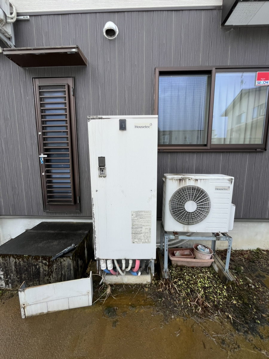 経年劣化によりエコキュートのブレーカーが落ちるとの事で交換依頼をお受け致しました。ハウステックのエコキュートからコロナのエコキュートへの入替になりました。